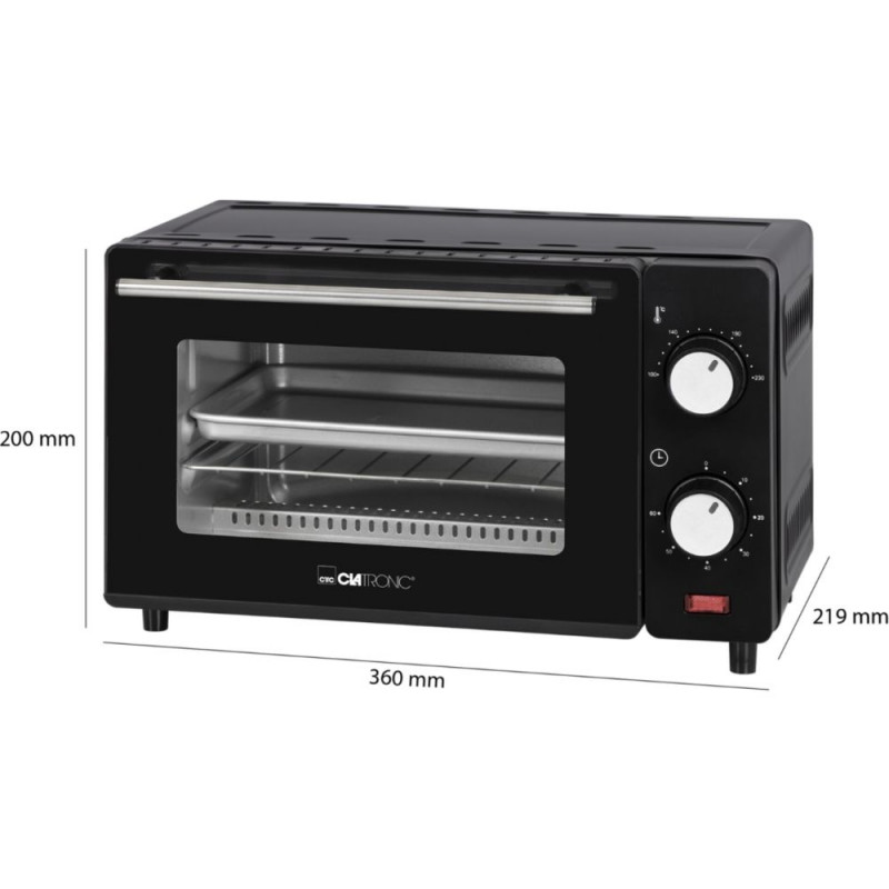 The MB 3746 mini oven from Clatronic is every bit as good as conventional ovens and microwaves and should not be missing from any household. With the top and bottom heat, two quartz heating elements as well as two variable insertion heights, delicious casseroles, cakes, pizzas or other oven and baked dishes are a success. Set the desired temperature continuously between 100°C and 230°C.