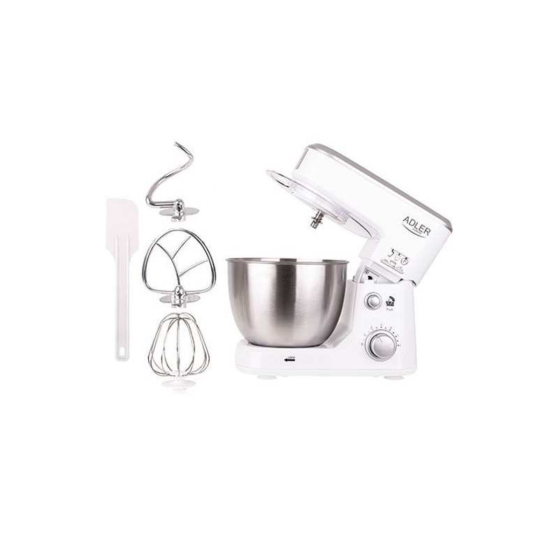 Planetary mixing system 6 speeds Tilt head 4.0 L stainless steel large bowl Anti-splatter cover 3 attachments: • Hook for kneading the dough • A whisk for mixing • Whisk for whipping eggs Stable suction cups Motor overload protection Power 500 W MaxiWarning: Last items in stock!