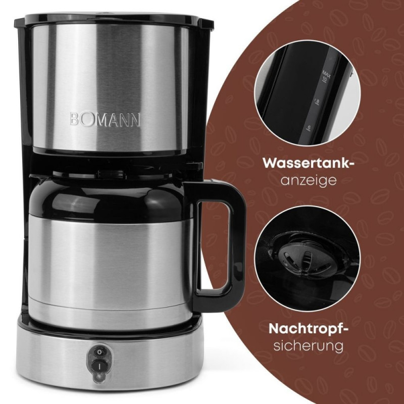 The Bomann KA6066CB filter coffee machine with an elegant design prepares 8-10 cups of aromatic coffee in one go.