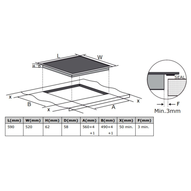Cooking zones: DuoZone 18x40 cm/ 3600 W, 16 cm/ 1500 W and 21 cm 2600 W.