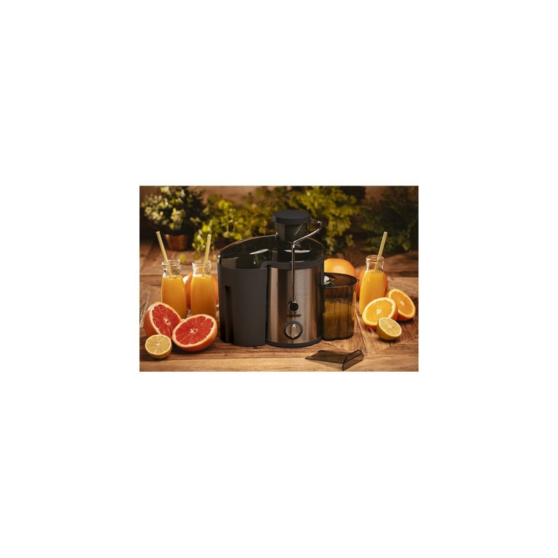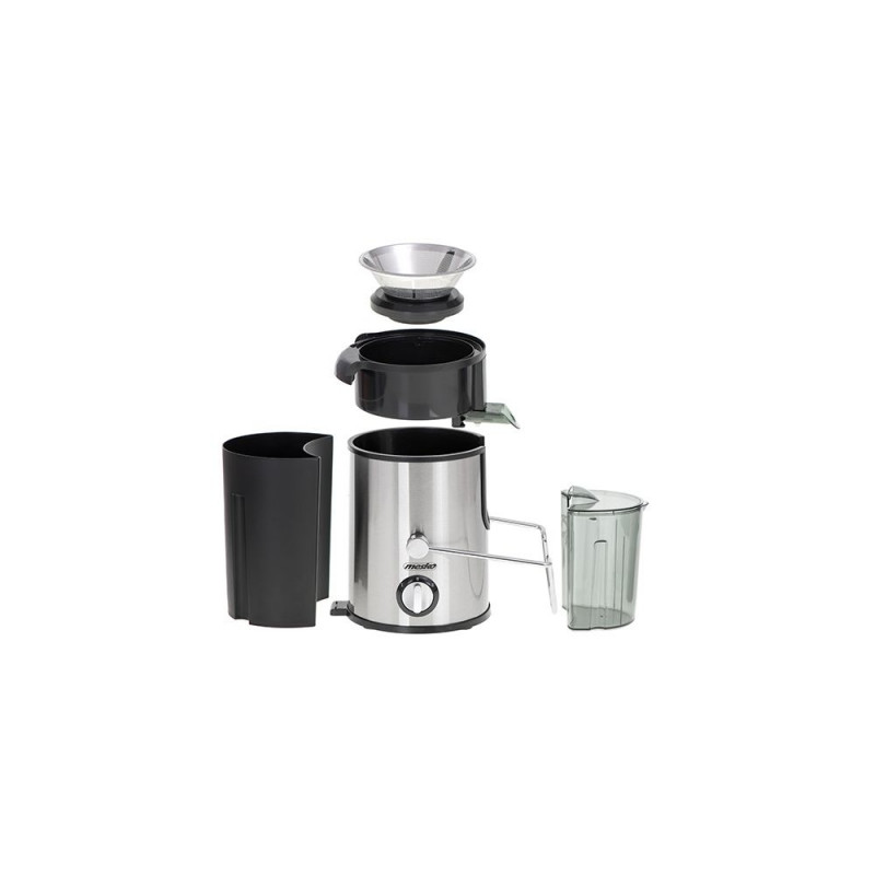 Funkcjonalna i kompaktowa sokowirówka o mocy 600 W pozwala na przygotowanie soków z owoców i warzyw, dzięki czemu pomaga zadbać o zdrowie użytkowników. Filtrowanie odbywa się przez drobne sitko ze stali szlachetnej, które zatrzymuje stałe elementy. W ten sposób do dołączonego w zestawie pojemnika trafia jedynie sok, zawierający najwięcej witamin. Miąższ i resztki pestek są oddzielane do drugiego pojemnika o pojemności 1,5L. Zbiornik na sok o pojemności 0,45L wyposażony jest w pokrywę co zapobiega niekontrolowanemu bryzganiu soku. Dzięki blokadzie bezpieczeństwa, niemożliwe jest włączenie nieprawidłowo złożonego urządzenia. Sokowirówka MS 4126 pozwala na bardzo szybkie przygotowanie soku z owoców i warzyw o średnicy do 65mm, większe należy pokroić przed włożeniem do podajnika. Dla większej wygody, elementy sokowirówki można myć w zmywarce do naczyń.