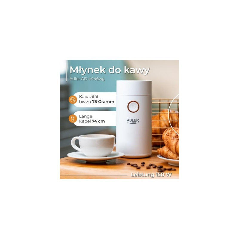 Młynek do kawy Adler AD 4446 to idealne rozwiązanie dla osób, które cenią sobie aromat i smak świeżo zmielonej kawy. Prosty w obsłudze, bezpieczny i wydajny - stanie się niezastąpionym elementem każdej kuchni.