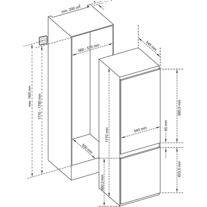 No Frost - you never need to defrost the device again. No-Frost technology ensures air circulation and optimal humidity levels in the upper and lower parts of the refrigerator. Excess moisture accumulates in a special container and evaporates there, preventing the formation of ice and frost inside the refrigerator.