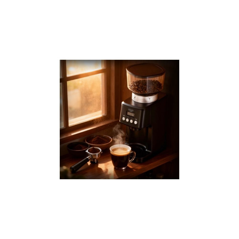 • Żarno stożkowe metalowe: Wytrzymałe i precyzyjne żarna gwarantują równomierne mielenie ziaren, co wpływa na pełnię smaku przygotowywanej kawy.