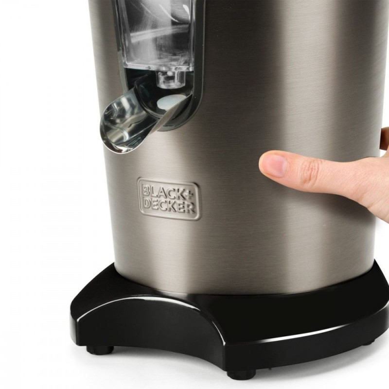 High-quality aluminum juicer lever/arm. Strong constant pressure maximizes juicing. Easy-to-use filter with pulp adjustment. Pulp quantity adjustment thanks to a simple rotation movement. Rubber feet guarantee the stability of the device. High-quality stainless steel filter. Stainless steel finish with Anti-Fingerprint coating. The set includes 2 interchangeable cones for juicing all types of citrus fruits. Anti-drip function to prevent dripping.