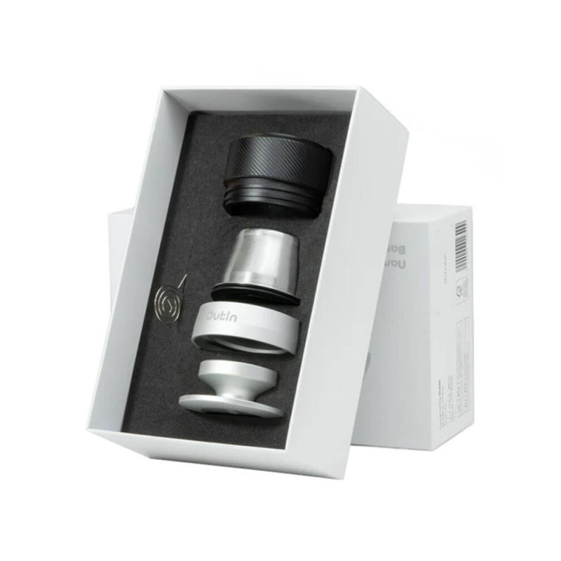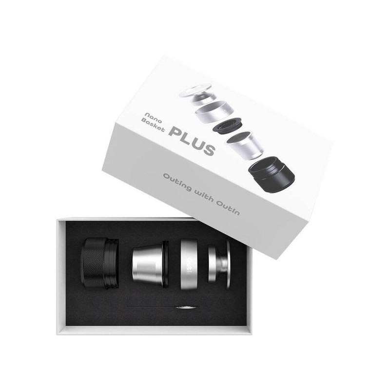 Enhance the capabilities of your Outin Nano espresso machine. The Outin Basket Plus kit consists of a tamper, dispenser, ground coffee filter, flask and coffee distribution tool. It allows you to prepare double servings of espresso with even more intense flavor. The increased capacity for ground coffee (16-18 g) allows you to brew coffee with a richer flavor and aroma profile. The products are made of high-quality food-grade stainless steel.