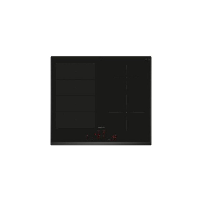 <b>The hob that adjusts to your cookware.</b><br>With flexInduction, the flexible cooking zone automatically extends to accommodate extra-large cookware (up to 24 cm) in diameter. If one zone is not big enough for your cookware, your hob takes control and activates more inductors for even heating. It’s also an excellent option for using teppanyakis or griddle plates up to 40 cm long.<br><br><b>Temperature control at your fingertips.</b><br>Operating your hob just got more intuitive. With the touchSlider, simply touch or slide your finger to control the power level of your cooking zones, making knobs a thing of the past. The heat regulation takes place in half levels, up to a maximum setting of nine.<br><br><b>The intelligent hob that makes life more convenient.</b><br>With Wi-Fi-enabled Siemens home appliances and Home Connect, your kitchen is more connected and intelligent. The synergy of Wi-Fi-enabled appliances, intelligent software and an intuitive app offers a wide range of options to easily integrate in your home. While some ease the workload and others open up new possibilities, they all make life as comfortable and convenient as never before.<br><br><b>Say goodbye to burned meals.</b><br>Now there is no need to have to think about adjusting heat settings while you cook. The fryingSensor Pro keeps the heat in the pan at a consistent level, with the choice of 11 temperature options. The intelligent sensor controls the temperature and avoids burning, so you get excellent results every time. Enjoy spending time with your guests, without worrying about burned food.<br><br><b>Automatic cooking zone selection and transfer.</b><br>Welcome to cooking zones that automatically adjust to your needs. With the intelligent flexZones, sensors under the glass ceramic automatically detect the shape and size of pots and pans and immediately combine or split the cooking zones accordingly. And if you move the cookware, the settings are transferred instantly. Simply place the cookware on the cooktop, turn it on and enjoy flexible cooking.<br><br><b>The hood that automatically adapts to your hob.</b><br>Do you want to bring your cooking to the next level? How about a hob that automatically interacts with the hood? We call it intelligent hood automatic: The hood matches the fan level to the temperature and power of the hob. After you finished cooking, the hood switches itself to the automatic afterrun function. Just connect your hob and matching hood to your registered Home Connect account<br><br><b>Discover a whole new world of delicious recipes.</b><br>Are you sometimes overwhelmed by deciding what to cook? Well, that is no longer a problem thanks to the Home Connect App which amongst other things, offers you a wide range of delicious recipes to suit your lifestyle. Make your choice and transfer the ideal settings to your hob with the touch of a button. Enjoy flexible food preparations, and above all, delicious meals. To use this feature, simply connect your hob to your registered Home Connect account.<br><br><b>Control different functions of your hood, like power level or light, directly from your cooktop (with matching hood) - cookConnect system.</b><br>Let your cooktop interact with your hood for even more convenience. Thanks to the cookConnect system, the hood now activates itself when you start cooking. Plus, the power level and the light can be adjusted either right on the cooktop or via the Home Connect App (with matching hood).<br><br><b>More power when you need it.</b><br>Use powerBoost to increase the power of an induction zone by up to 50%. That could save you up to 35% of the time it usually takes to heat up pots. Spend less time waiting and more time stirring, seasoning and serving your brilliant meals.Siemens iQ700 EX651HEC1E. Product colour: Black, Appliance placement: Built-in, Hob width size: 60 cm. Control type: Touch, Control position: Front, Clock type: Electronic. Connected load (electric): 7400 W, AC input voltage: 220 - 240 V, AC input frequency: 50 - 60 Hz. Width: 592 mm, Depth: 522 mm, Height: 51 mm. Package width: 753 mm, Package depth: 608 mm, Package height: 126 mm