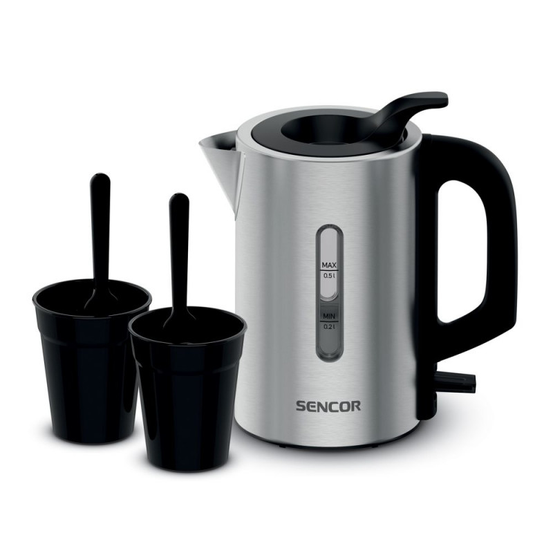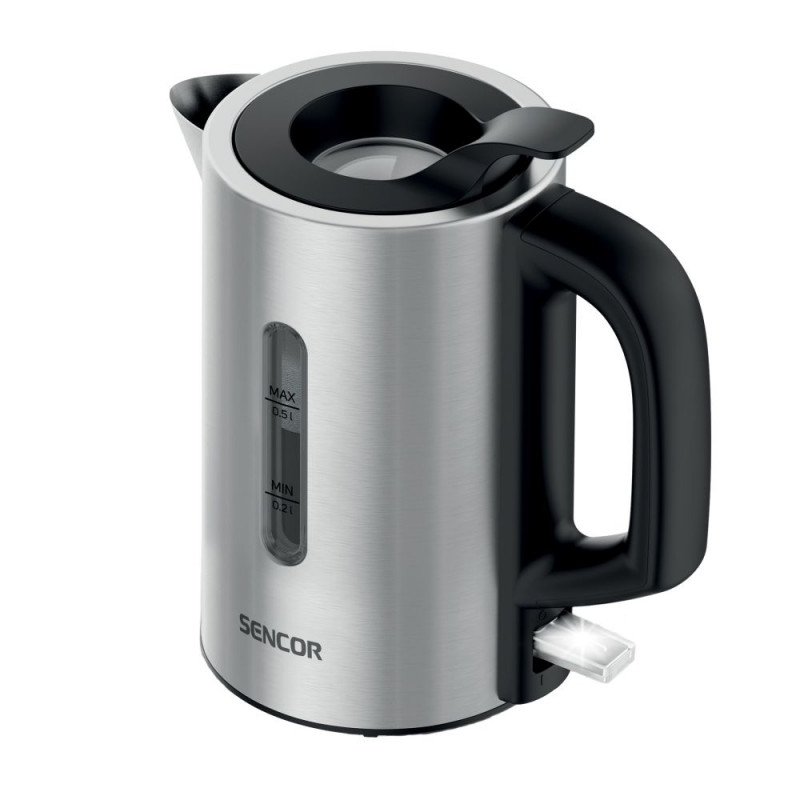 A small and compact kettle, the Sencor SWK 170SS is ideal for travelling, in caravan, yacht or just saving space in a small kitchen. The kettle has a capacity of 0.5 litres of water and is made of high quiality stainless steel. The 1100 W hidden heating element ensures fast hot water preparation. Filling with water is easy via the practical lid, which does not need to be opened or taken down. You can check water level trough transparent window on the side of the kettle.