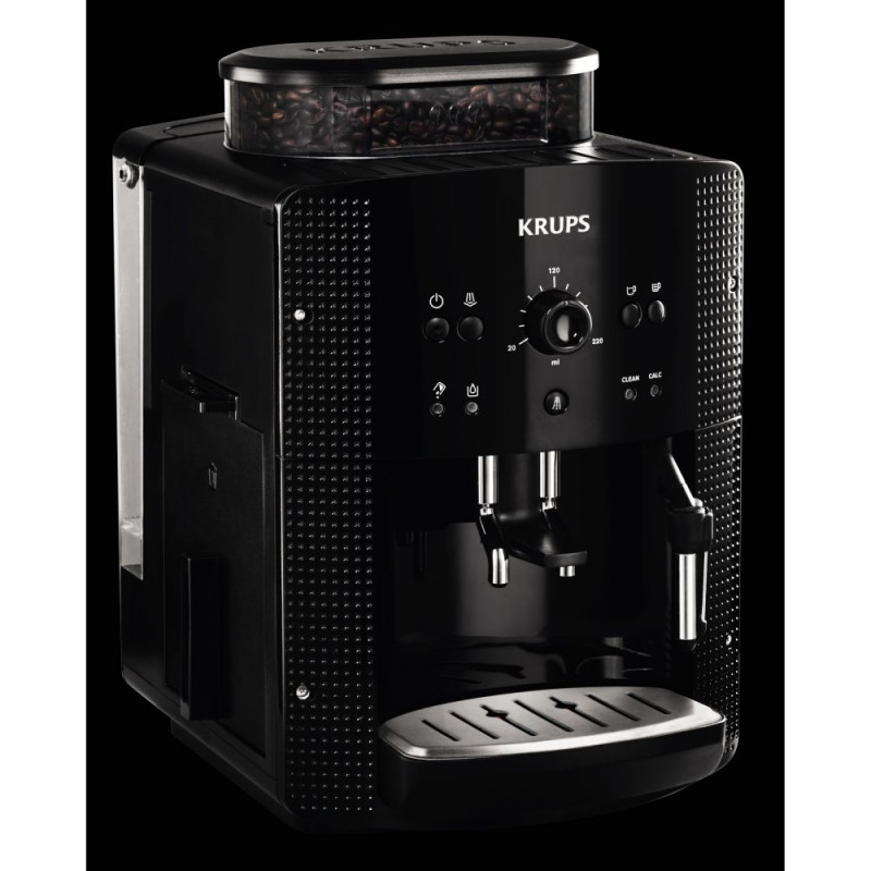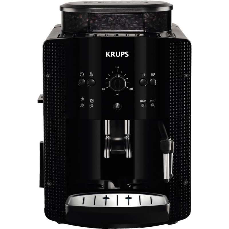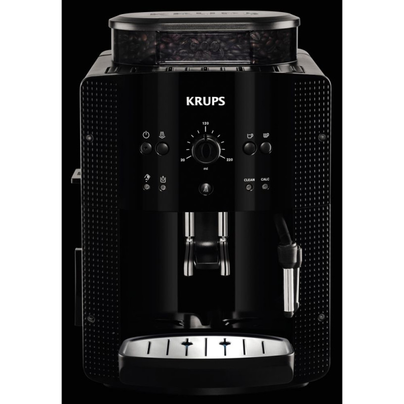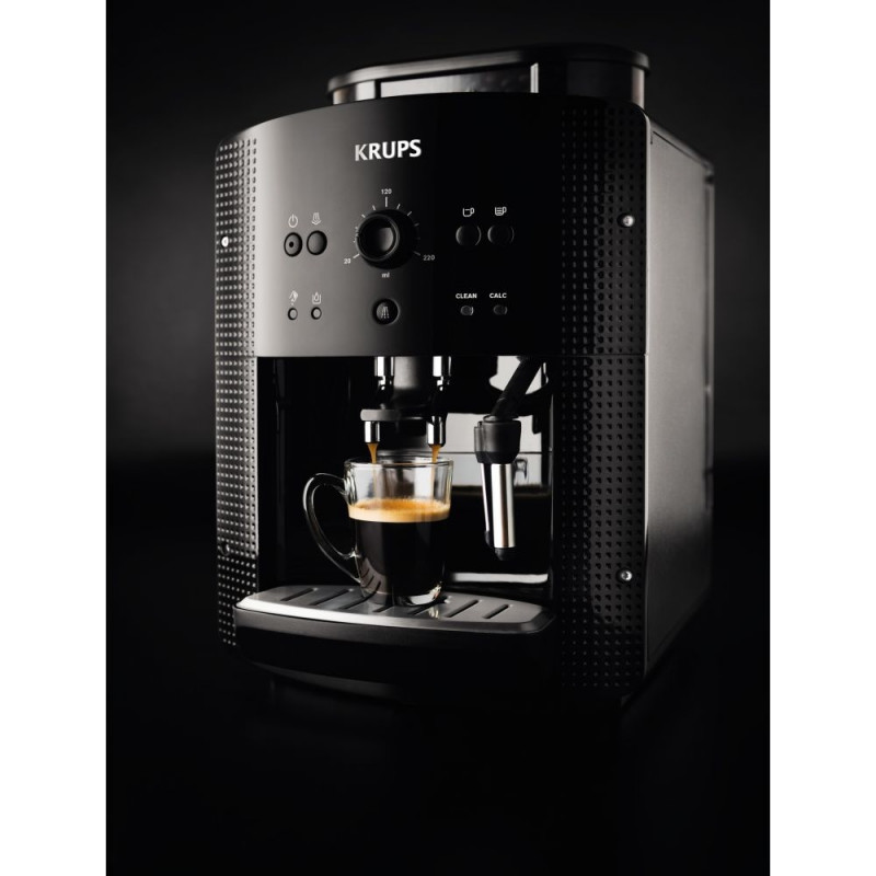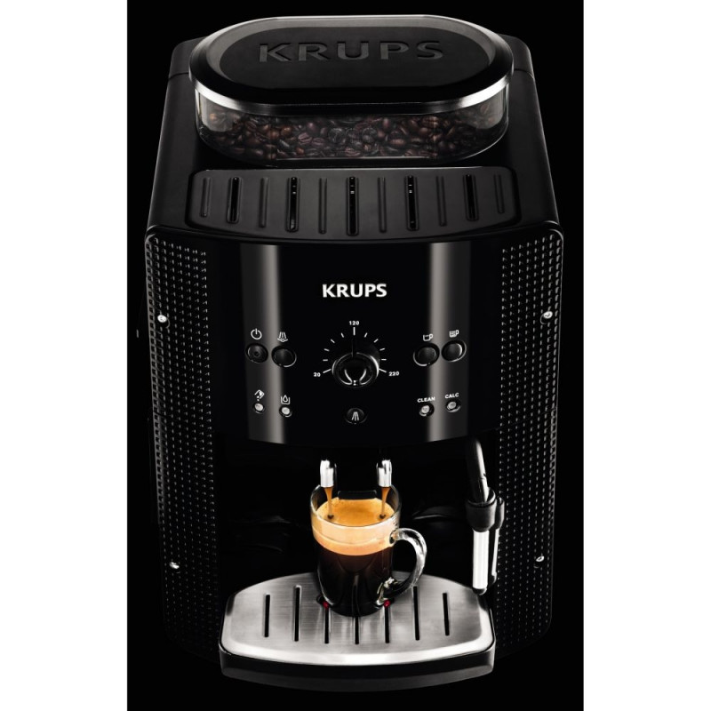 "Krups EA8108. Produkttyp: Espressomaschine, Kaffeezubereitungstyp: Vollautomatisch, Fassungsvermögen Wassertank: 1,8 l, Kaffee-Einfüllart: Kaffeebohnen, Gemahlener Kaffee, Behälter für gebrühten Kaffee: Tasse, Anzahl der Ausflüsse: 2, Eingebautes Mahlwerk. Leistung: 1450 W. Produktfarbe: Schwarz"