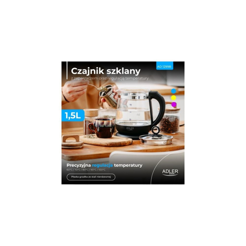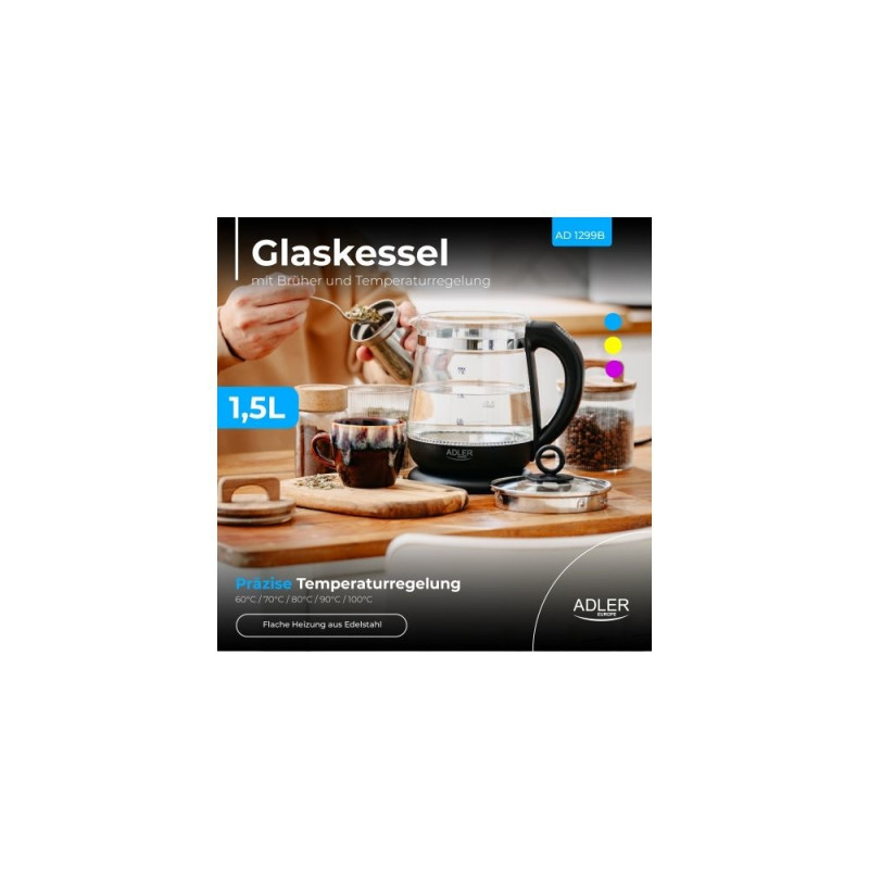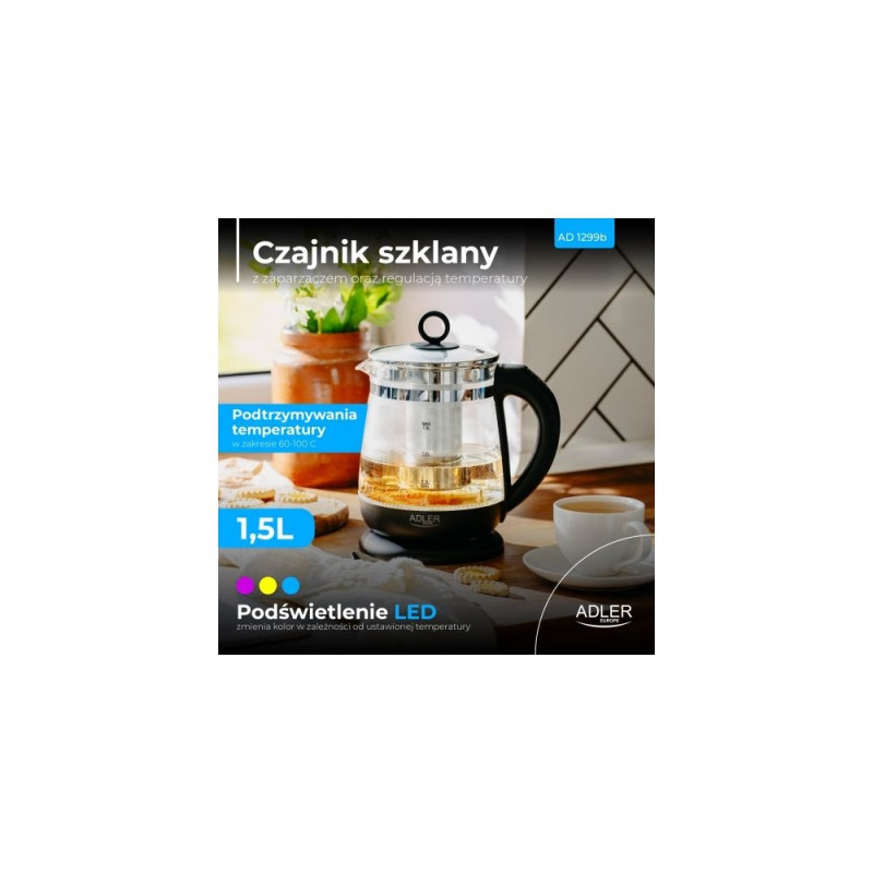 AD 1299 black Czajnik szklany 1,5 l z zaparzaczem i regulacją temperatury | 1,5 l | led | 60?100°c |