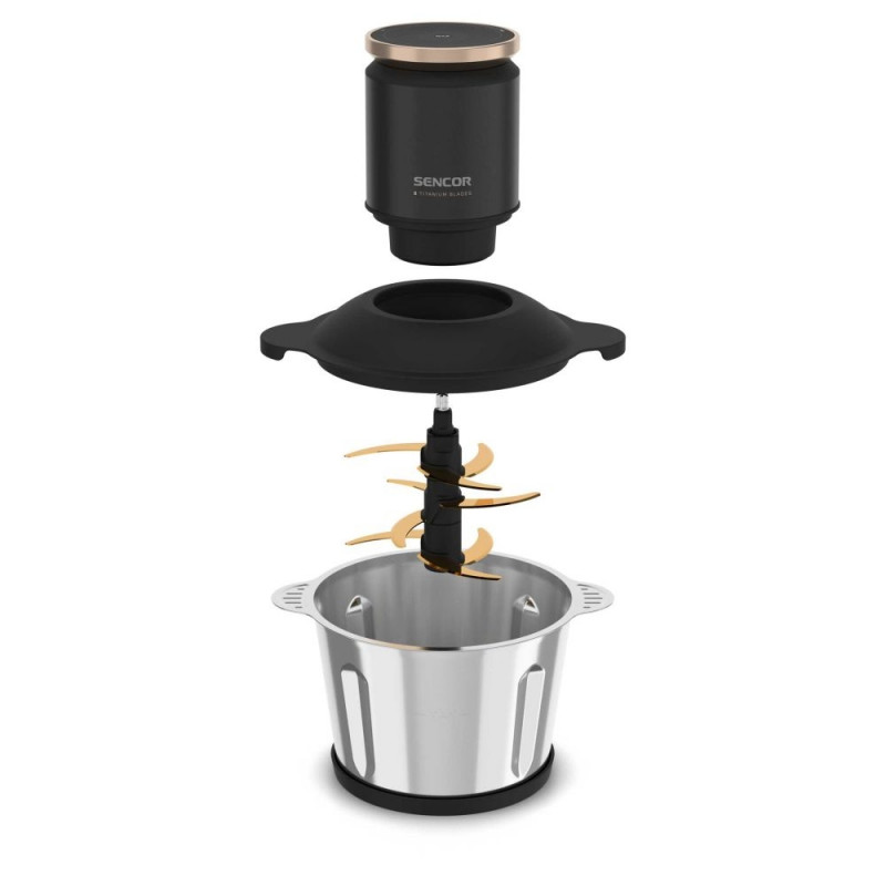 3L Stainless Steel Bowl and 9 Gold Titanium Coated blades for all Kinds of chopping food