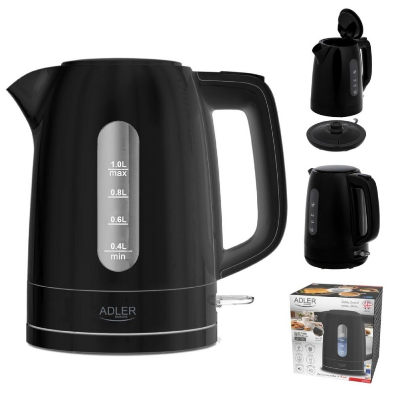 Electric Kettle - ADLER AD 1380B 1L 2200W Auto Power-Off Black