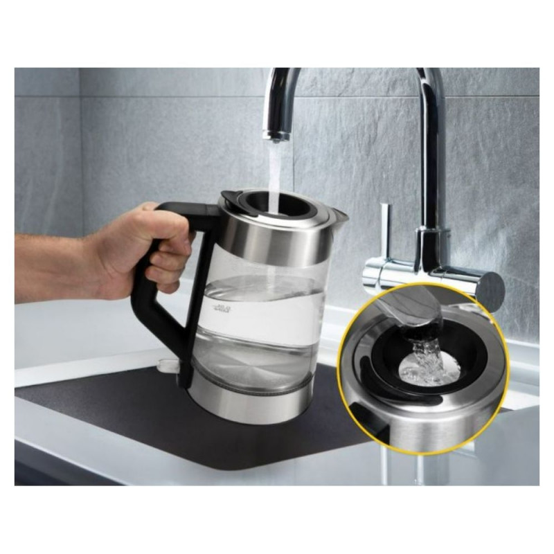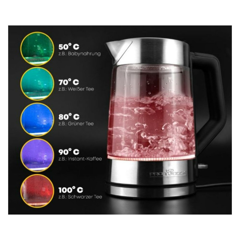 The elegant design of the glass and stainless steel housing, as well as the 5-color, temperature-dependent lighting of the water tank, make this kettle a must-have for every design enthusiast.