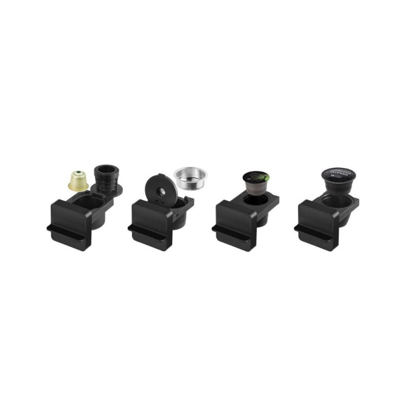 - 3 adapters for various capsule types - Nespresso (Ø 36 mm), Tchibo/Cafissimo (Ø 44 mm), Dolce Gusto (Ø 70 mm)