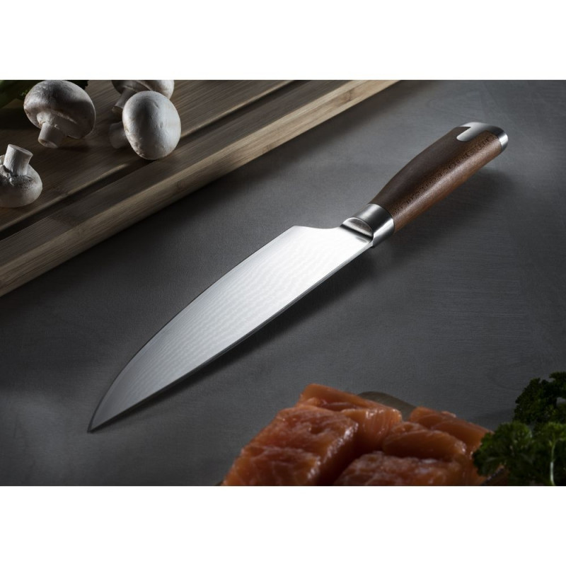 They are a mirror of the traditional knife shapes proved by generations of chiefs. As well as the age-old technology, that is used for their manufacture, it gives an exceptional quality to the knives. The knives made by the pattern-weld technology in 67 layers combine a soft steel VG2 and a hard steel VG10. Thanks to this, they got the exceptional properties – extreme hardiness and long lifetime