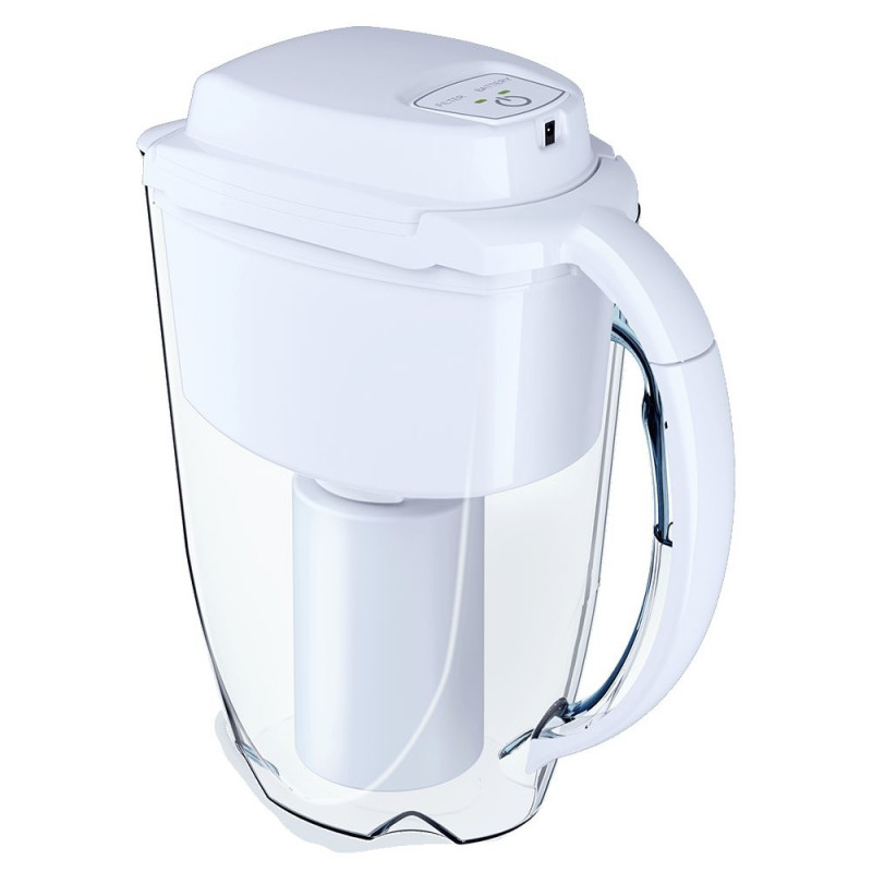 The filter combines the capabilities of a full-fledged under-counter system with the shape and portability of a jug. Just press START and enjoy clean, safe, and tasty water right from the tap anywhere in the world.