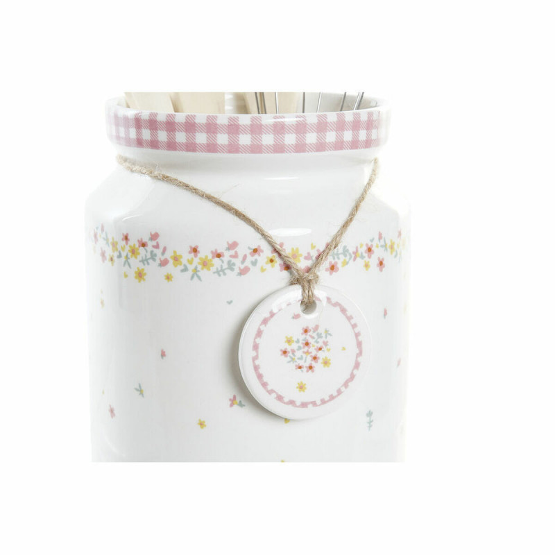 Set of Kitchen Utensils DKD Home Decor Dolomite MDF Wood 12 x 12 x 22 cm Flowers