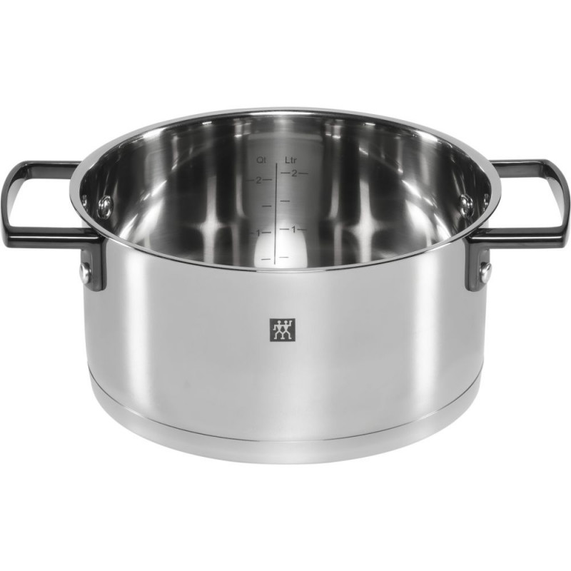 The wide pouring rim guarantees safe and precise pouring without dripping. The integrated filling scale facilitates measuring directly in the pot. Set consists of three saucepans (1 l / 16 cm, 3.5 l / 20 cm, 6 l / 24 cm) as well as a 20 cm frying pot (3 l) and a 16 cm saucepan (1.5 l).