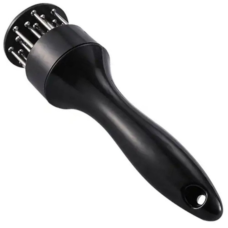- Wyposażony został w długi i wygodny uchwyt oraz aż 16 stalowych igieł, które świetnie rozbijają mięso.