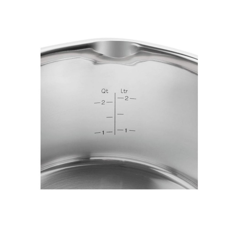 Welcome to the next level of cooking: the Simplify series from ZWILLING is design and functionality. The 5-piece pot set impresses not only with its extraordinary appearance - each pot in the set also impresses with its innovative properties. The 5-piece cookware set includes 3 high pots (16, 20 and 24 cm in diameter), a low pot with a diameter of 20 cm and a saucepan with a diameter of 16 cm. In addition, all pots, except the pot, come with a fitted lid. A sieve with two holes of different sizes is integrated with a gray silicone rim, so the liquid can be poured without additional accessories. The X marking on the lid indicates the optimal position to limit steam escape. Thanks to the integrated handle, the glass lid with pouring function can be attached to the pot during cooking and no longer needs to be put aside. With the Simplify pot set, you don't have to worry about hot handles while cooking: the handles are covered with soft-touch silicone - for easy handling while cooking. The vessel is made of 18/10 stainless steel and is of high quality, and the multi-layer SIGMA Classic+ bottom ensures perfect heat distribution. All five pots are dishwasher safe and induction-compatible.