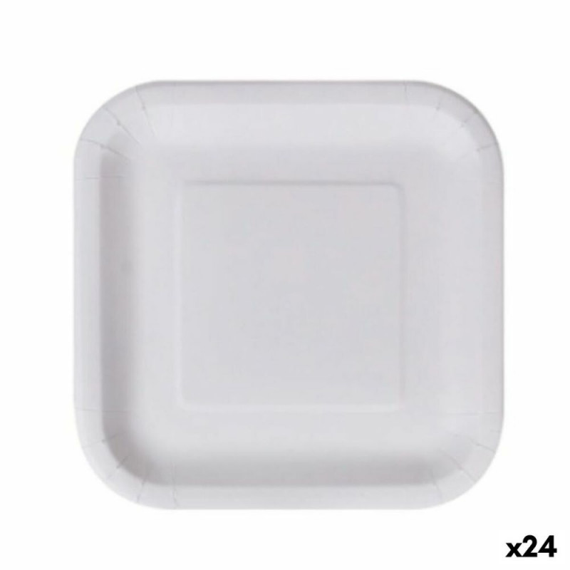 Plate set Algon Disposable White Cardboard Squared 23 cm (24 Units)