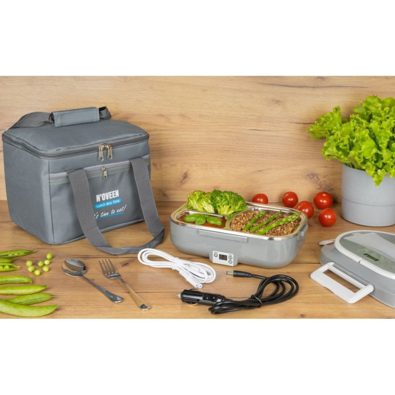 This solid and aesthetic device is equipped with a PTC heating element, which allows you to heat food up to 60° C in 30 minutes. The heater is closed tightly with snap fasteners that block the air access. This keeps your meal fresh for longer period of time. Lunch Box LB640 Dark Grey is a solution for people who value activity and healthy diet. It is perfect for work, studies, travel, land and camping holidays. The LB640 Dark Gray model is equipped with an LED display with a control panel with which we can set the temperature and delay start (8 hours). The LB640 Dark Grey model has three power sources: mains 230 Volt, car 12 Volt and trucks 24 Volt.