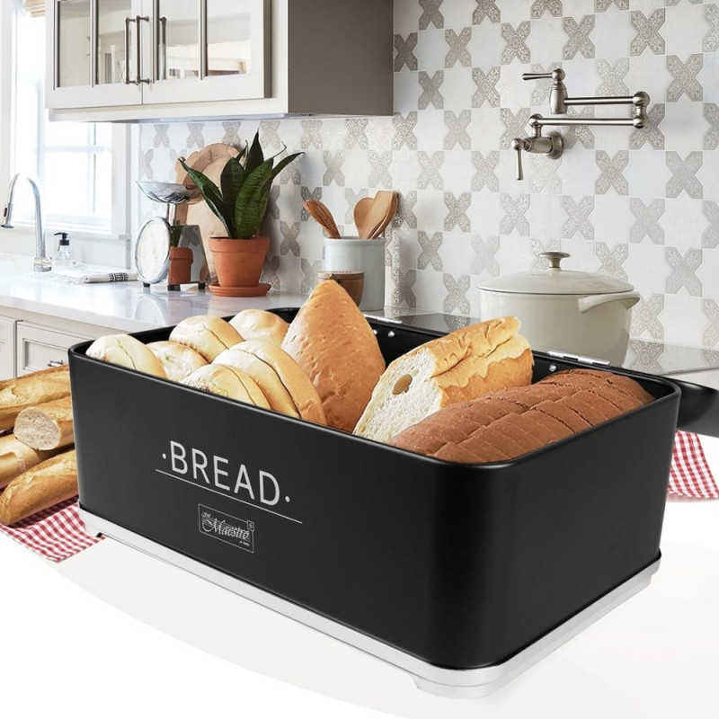 The Bread Box - Maestro Mr-1677-ar Rectangular is a compact storage solution designed for small kitchens or spaces. Made of durable stainless steel, it features a sleek black finish and rectangular shape for optimal storage space.