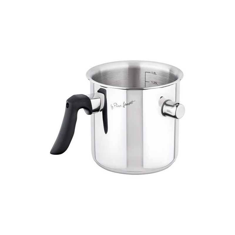 - The milk cooking pot is made of high quality steel with a double wall that has thermoaccumulation properties enabling quick heat distribution and energy saving.