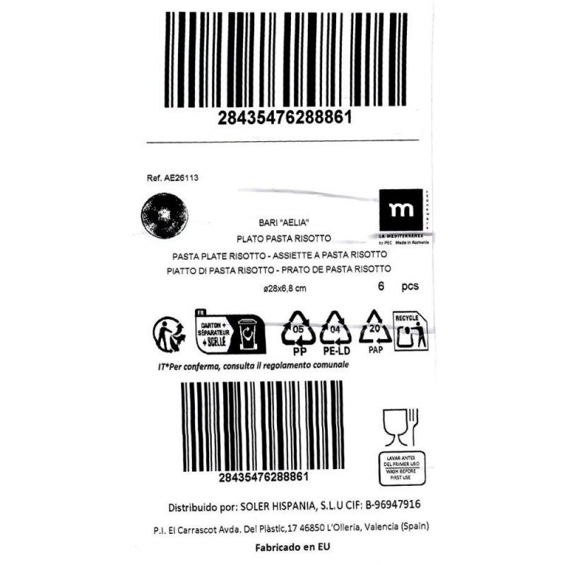 Pasta Dish La Mediterránea Aelia Ø 28 cm (6 Units)