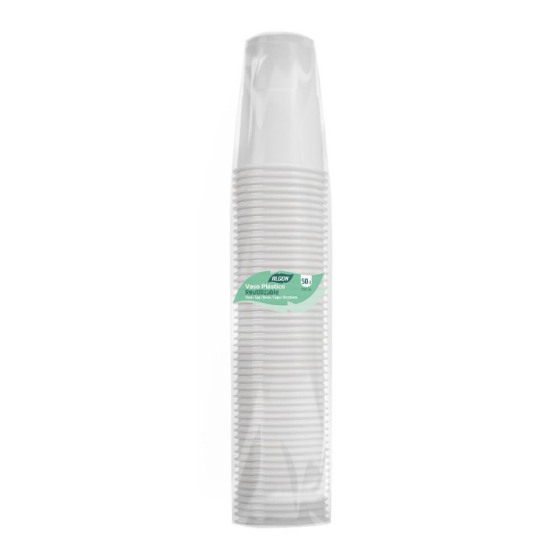 The Algon glass set consists of 50 pieces of glasses made from white plastic, ideal for everyday use or events requiring a practical, disposable solution. Each glass has a capacity of 250 ml, a suitable volume for serving cold or hot drinks in moderate amounts, facilitating handling and consumption at gatherings, parties, or professional settings. This set offers versatility and convenience, as the glasses are designed to resist liquid contact without easily deforming, maintaining hygiene by being disposable. Additionally, the white color provides a neutral and clean look, allowing them to easily fit any decoration or theme without overshadowing the presentation of beverages. The sales unit includes a total of 18 sets, making replenishment or supply for medium-sized groups easier. Due to its design and quantity, the Algon glass set combines functionality and practicality for those seeking an economical and efficient option without sacrificing quality in disposable tableware products. It is an ideal solution for those needing reliable plastic glasses in large quantities for various consumption occasions.