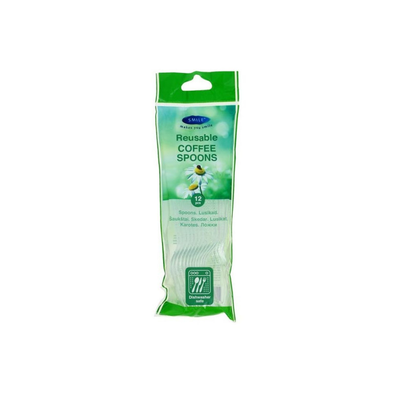 Spoons SMILE plastic, white, 12pcs