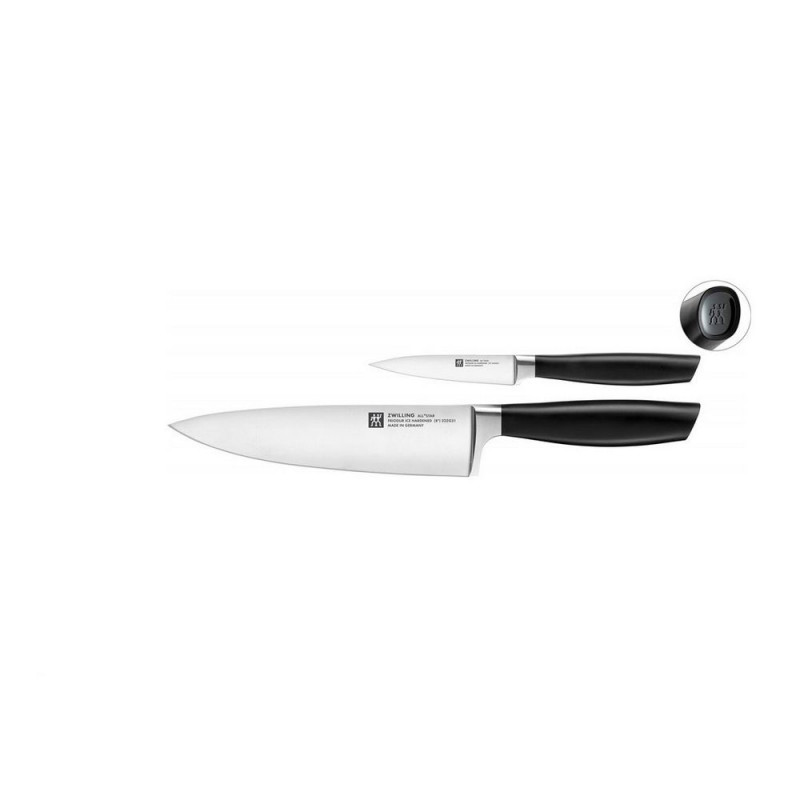 Two knives mean double the cutting powerand they look better than a lone blade lying on the countertop. With the ZWILLING ALL * STAR two-piece knife set, you get two kitchen assistants that make cooking even more enjoyable. The vegetable and fruit knife allows you to quickly peel and prepare your favorite healthy snacks, while the chefs knife is a truly versatile tool, easily slicing fish, meat, fruits, and vegetables.