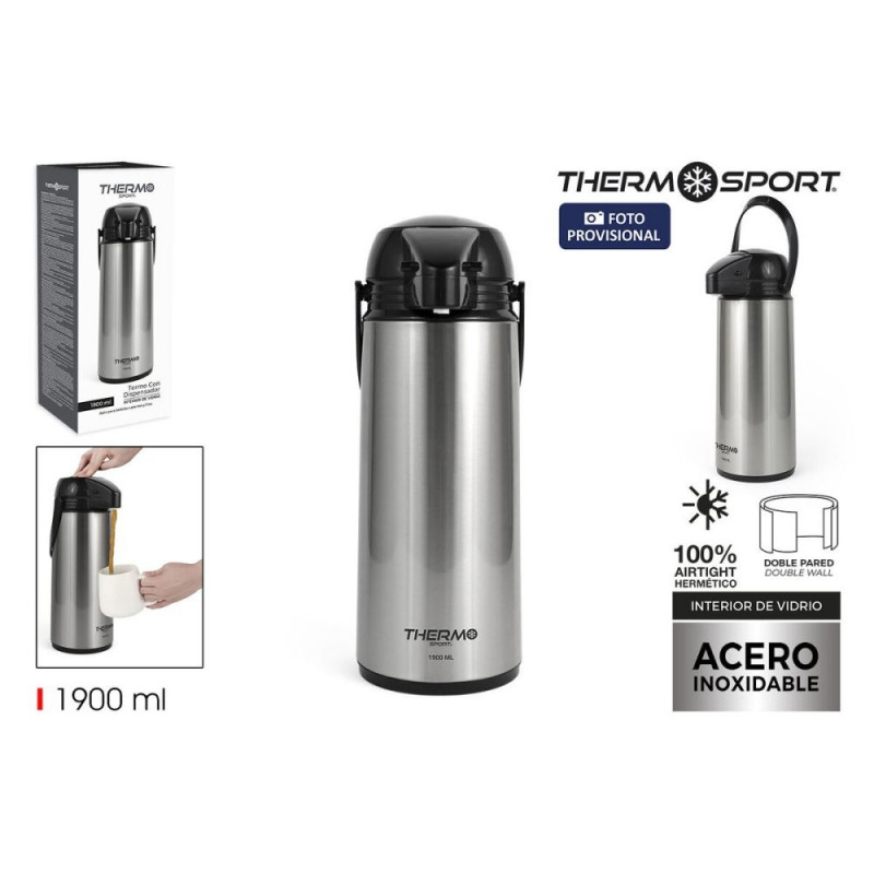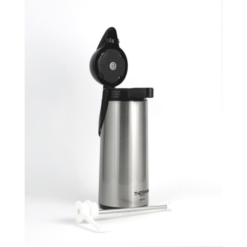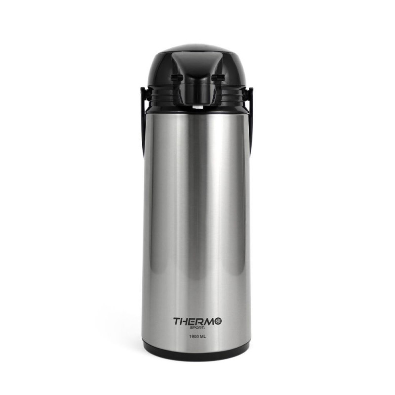 The ThermoSport thermal jug is a dispenser designed to maintain the optimal temperature of your liquids thanks to its steel construction, which provides high resistance and durability. With a silver finish, this product combines functionality and style, adapting to various domestic and professional settings. Its 1.9-liter capacity is ideal for serving hot or cold drinks to multiple people without frequent refills, making it a practical choice for gatherings, offices, or outdoor activities. Additionally, the jug features a dispenser system that allows comfortable and controlled serving, preventing unnecessary spills and ensuring a simple and hygienic user experience. The combination of its features as a jug, thermal container, and dispenser positions it as a versatile product that preserves temperature for long periods without compromising ease of use. This ThermoSport thermal jug is an efficient solution for those who need to keep their beverages at the desired temperature with a robust and functional design.