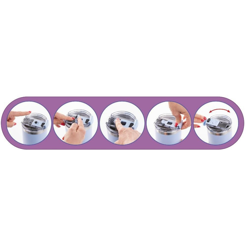 Its ergonomic handle and practical inner straw, which can be easily retracted when not in use, are the main advantages. Drinks can be consumed either through the straw or the sealable opening in the lid. Designed for the convenient transport of hot or cold drinks. The stainless steel insert makes the thermomug practically indestructible. The straw is intended for use with cold drinks only.