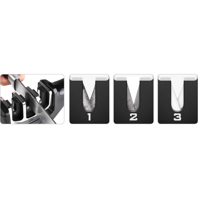 3-stage knife sharpener made from softened ABS plastics with an anti-slip base