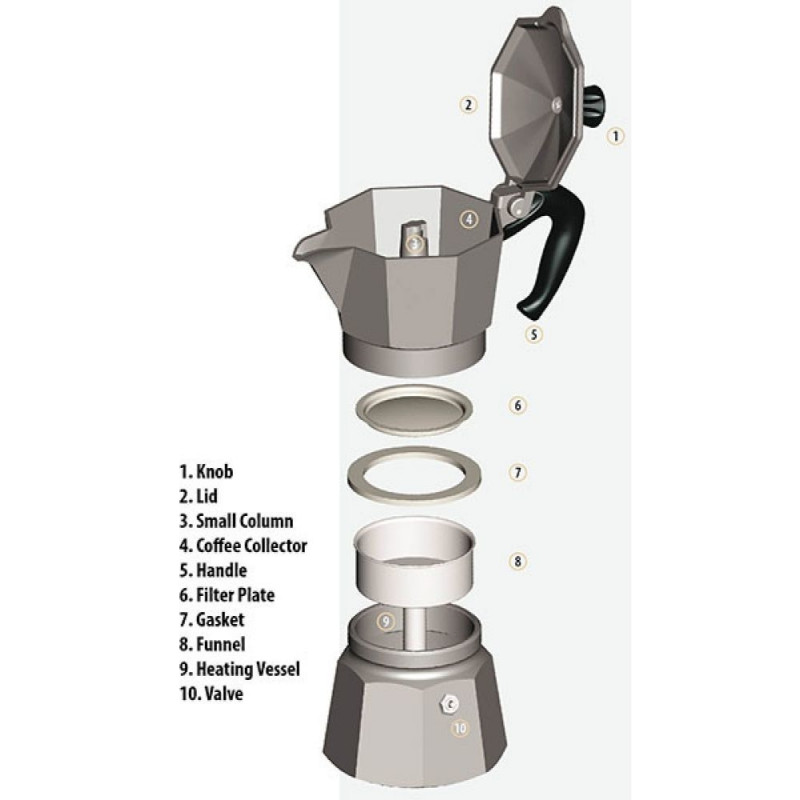 This moka pot is built from a durable aluminum alloy that makes it suitable for use on all stove types except induction.