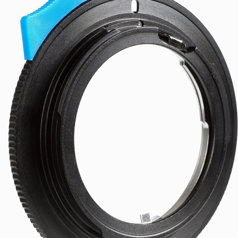 Die Blendeneinstellung an Objektiven der Nikon G-Serie (fehlender Blendenring) kann durch einen speziellen Ring am Adapter gesteuert werden.
