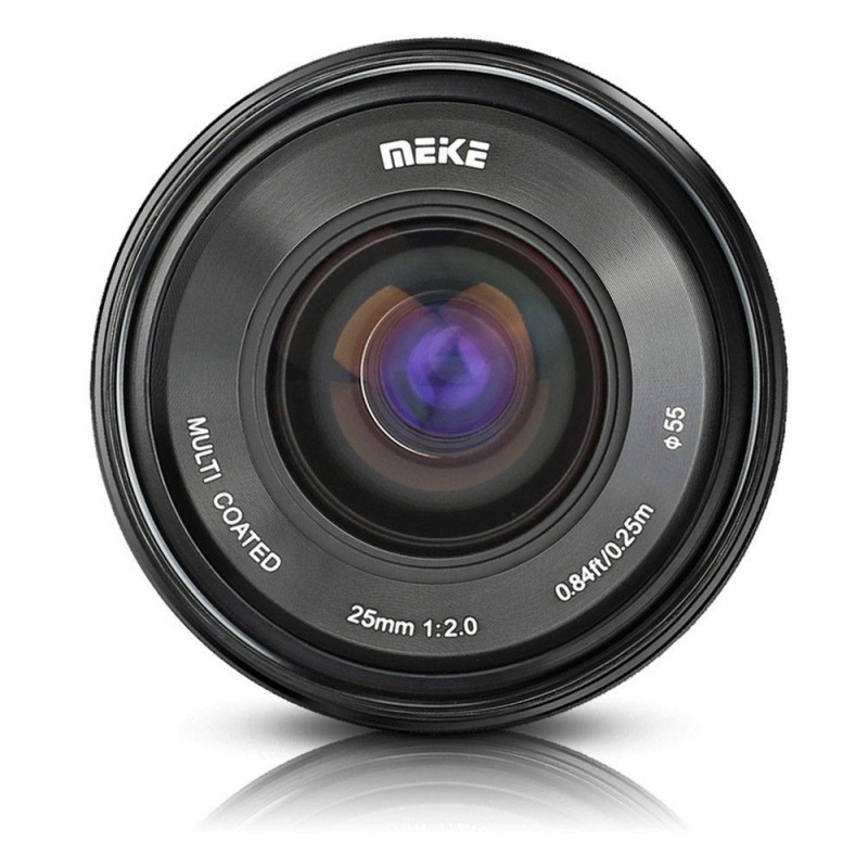 The Meike MK 25mm f/2.0 is a wide angle fixed focus lens. With a large aperture of f/2.0 to f/22, this lens is highly sensitive to light and has high accuracy, even in low light. The Meike MK 25mm has manual focus.