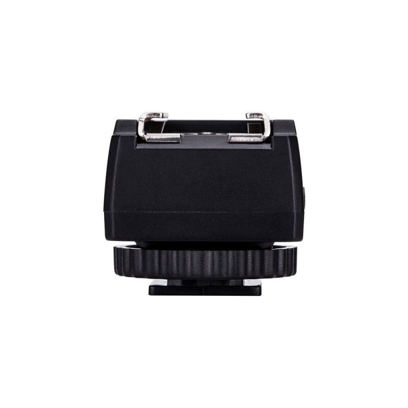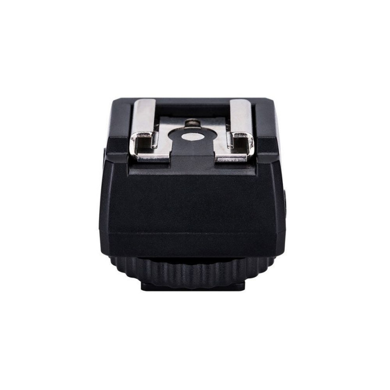 The JJC JSC 9 adapter is ideal for use with external speedlite units. The JSC 9 has a standard hotshoe on top and a coldshoe base with a female 1/4" 20 tripod connector on the bottom. This allows you to easily mount a flash unit on a tripod with this adapter. Also included are a PC female and a 3.5mm jack for fitting additional accessories.,