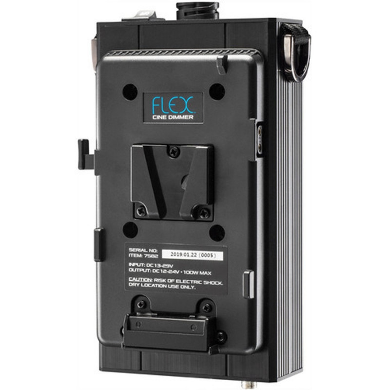 The compact flexible LED dimmer is constructed with a heavy duty, lightweight aluminum enclosure and can mount to a stand via the built in 1/4" 20 thread or hung with the removable d ring shoulder strap.The Flex Cine Dimmer has on board controls for adjusting light intensity from 0 100% output. When paired with flexible bi color LED mats, it can be adjusts color temperature from 2800 6000K and offers 4 convenient customizable presets.