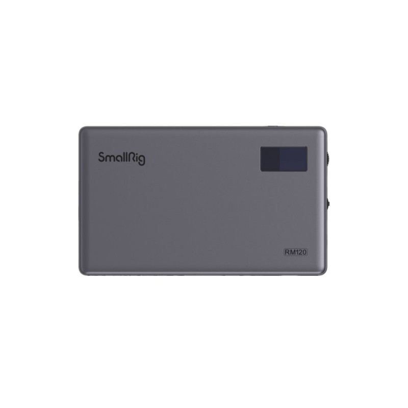 SmallRig 3808 RGB Videolight RM120 Long-Battery-LifeSuper Long Battery Life - lasts 180 minutes at max brightness.Built-in high-capacity battery cell: up to 5000mAhCharged and discharged at the same time at max brightness (automatic overheat protection)All-in-OneDesign and PortabilityThe combination of metal frame and minimalist design Ultrathin, good to touch and grip, sleek appearanceAll-metal integrated bodyhas high strength, great heat dissipation, and durabilityPowerful and portable, SmallRig RM120 Long-Battery-Life RGB Video Light making it a hassle-free way of long-time shooting in various scenes.It features0% ~ 100% brightness98+ CRI98+ TLCI2500K ~ 8500K color temperature360° Hue adjustment100-level saturation adjustment and 12 lighting effects.You can simply and accurately adjust parameters shown on the integrated OLED display screen via thumbwheels, knobs, and buttons.This Video light comes with a built-in 5000mAh lithium battery, charged by the included USB-C charging cable, one anti-twist 1/4"-20 threaded holes on one side and at the bottom to attach camera and cage, as well as a diffuser for scattering the soft light outputCompatibility:1/4''-20 threaded hole on one side and at the bottom for attaching other devices with 1/4''-20 screwPackage Includes:1 × RM120 Long-Battery-Life RGB Video Light1 × Dual Cold Shoe Mount1 × Diffuser1 × USB-C Charging Cable1 × User Manual