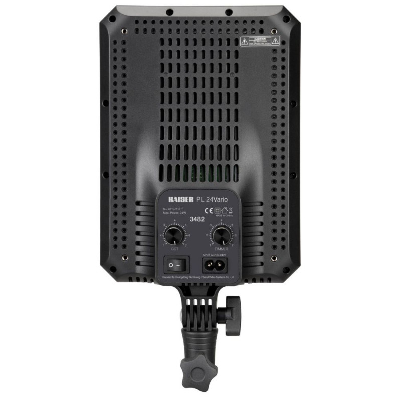 - Color temperature continuously adjustable from 3200 Kelvin (artificial light / warm white) to 5600 Kelvin (daylight / neutral white).