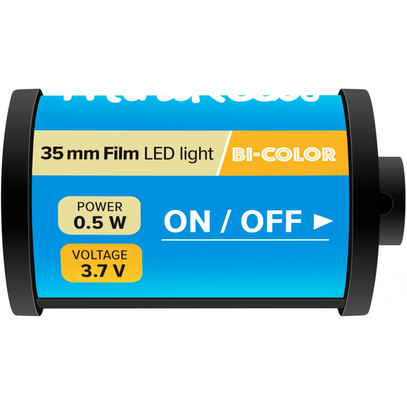 - Compact LED light in the shape of a photo film case