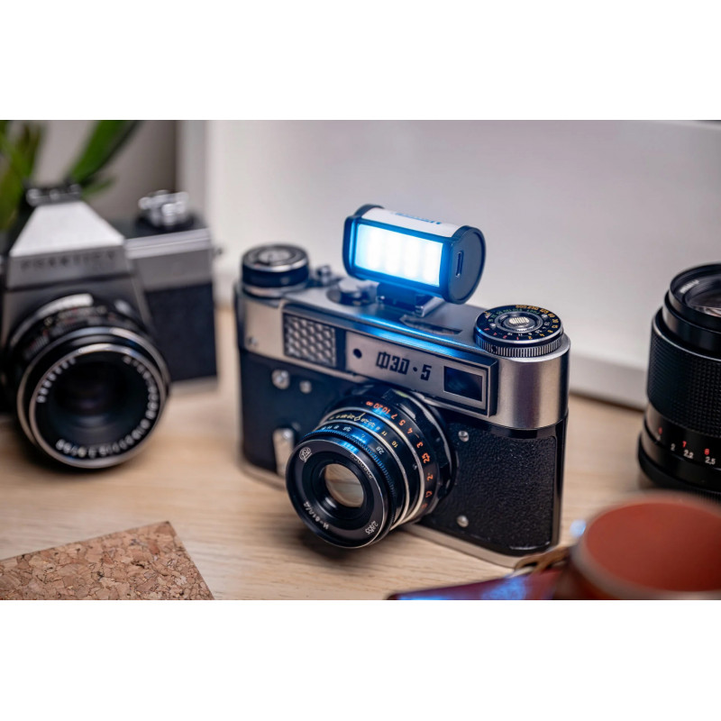 One of the most practical features of the Newell RGB MiniReels is the magnetic mount included in the kit. On one side it attaches to the light with a magnet, and on the other – it fits into the cold shoe socket you’ll find on most cameras. This universal mounting point is also gaining popularity among compact photo-video accessories. As a result, you can instantly mount the Newell RGB MiniReels LED light wherever you happen to need light: on your camera, on a tripod or on your cameraman’s cage. It’s a quick, intuitive and extremely convenient solution that greatly enhances the functionality of this small device.