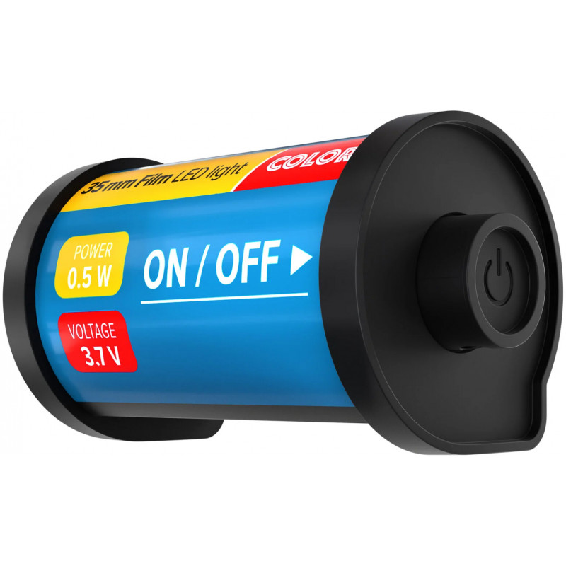- Compact LED light in the shape of a photo film case