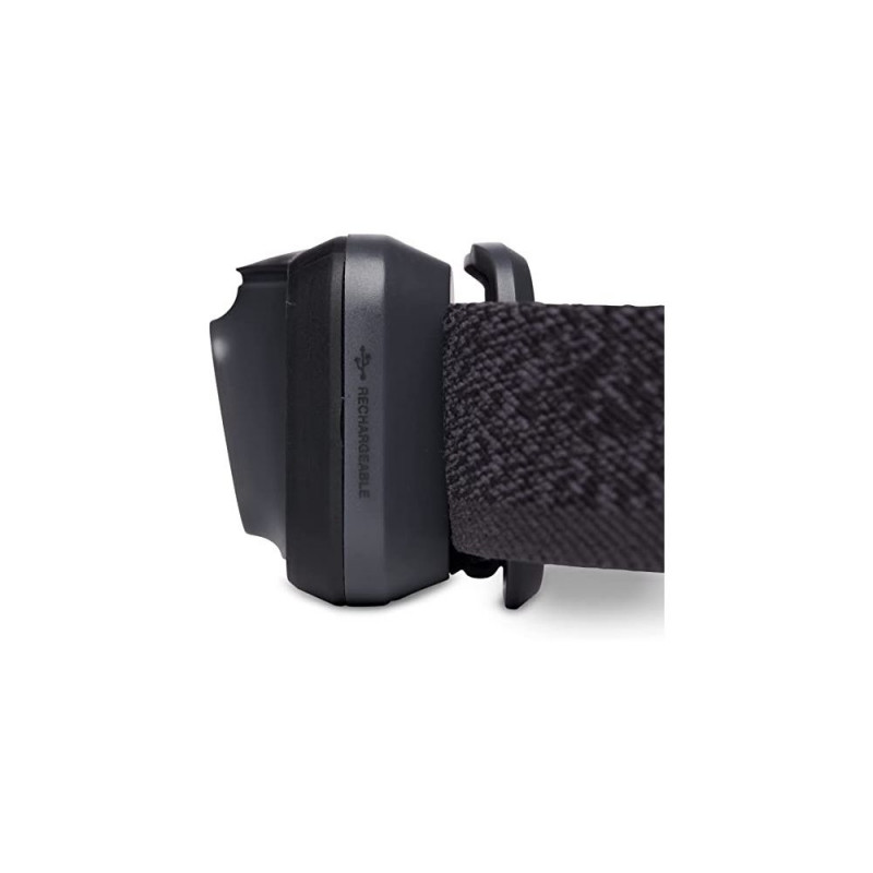 More info: micro-USB port for charging the battery | elastic headband made of skin-friendly Repreve fiber | the night vision mode offers dimming and flashing settings and can be activated directly