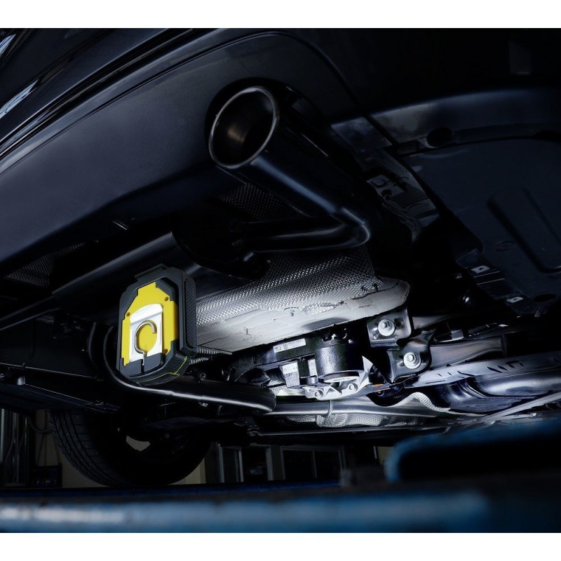 Powerful work torch with power bank function. Includes a handle with a strong magnet to attach the torch wherever you need it.