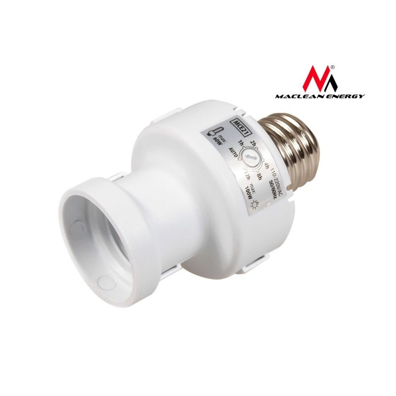 Oprawa żarówki Maclean, E27, max. 100W, z czujnikiem zmierzchu, timer, kolor biały, MCE21W
