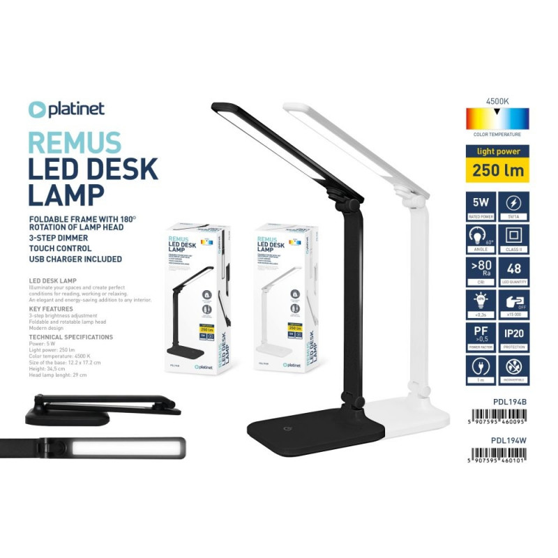 PLATINET DESK LAMP LED REMUS 5W USB CHARGER TOUCH SWITCH BLACK [46009]