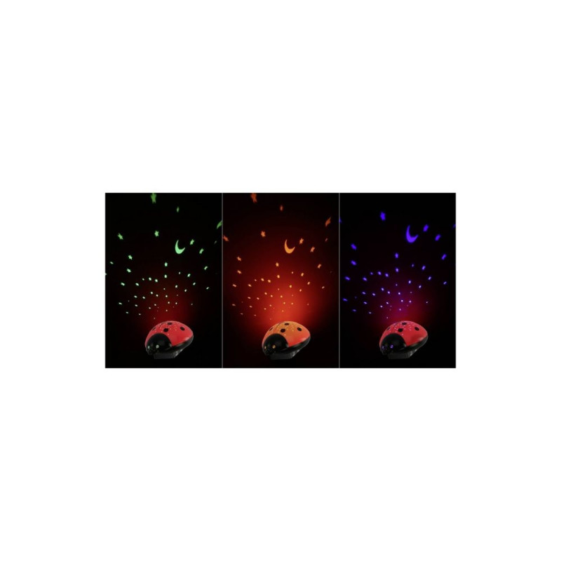 Night light in shape of a beetle. The perfect help for young and old to fall asleep. The device projects a starry sky to ceiling and wall in dark rooms and creates an fascinating atmosphere. Babies and small children are enchanted and the starry sky gives saftey. Four different colour worlds are available by touch button: yellow, green, blue as well as automatic colour change.